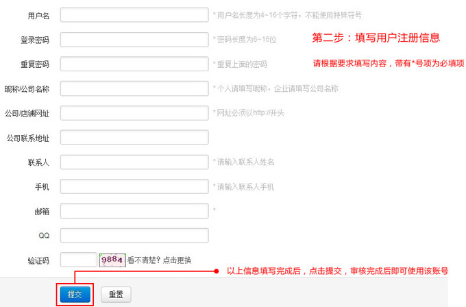 1、用户注册 ,按要求填写相关信息